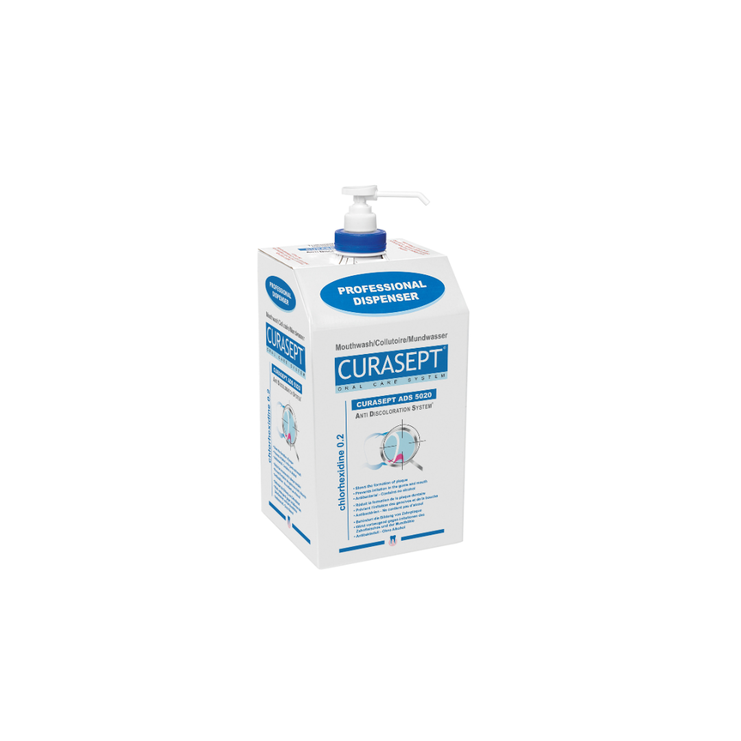 Curasept ADS 5020 Mouthwash is the professional pump bottle of the Curasept ADS range and is an intensive chlorhexidine mouthwash containing 0.20% chlorhexidine alongside PVP-VA and the Curasept Anti Discolouration System (ADS).