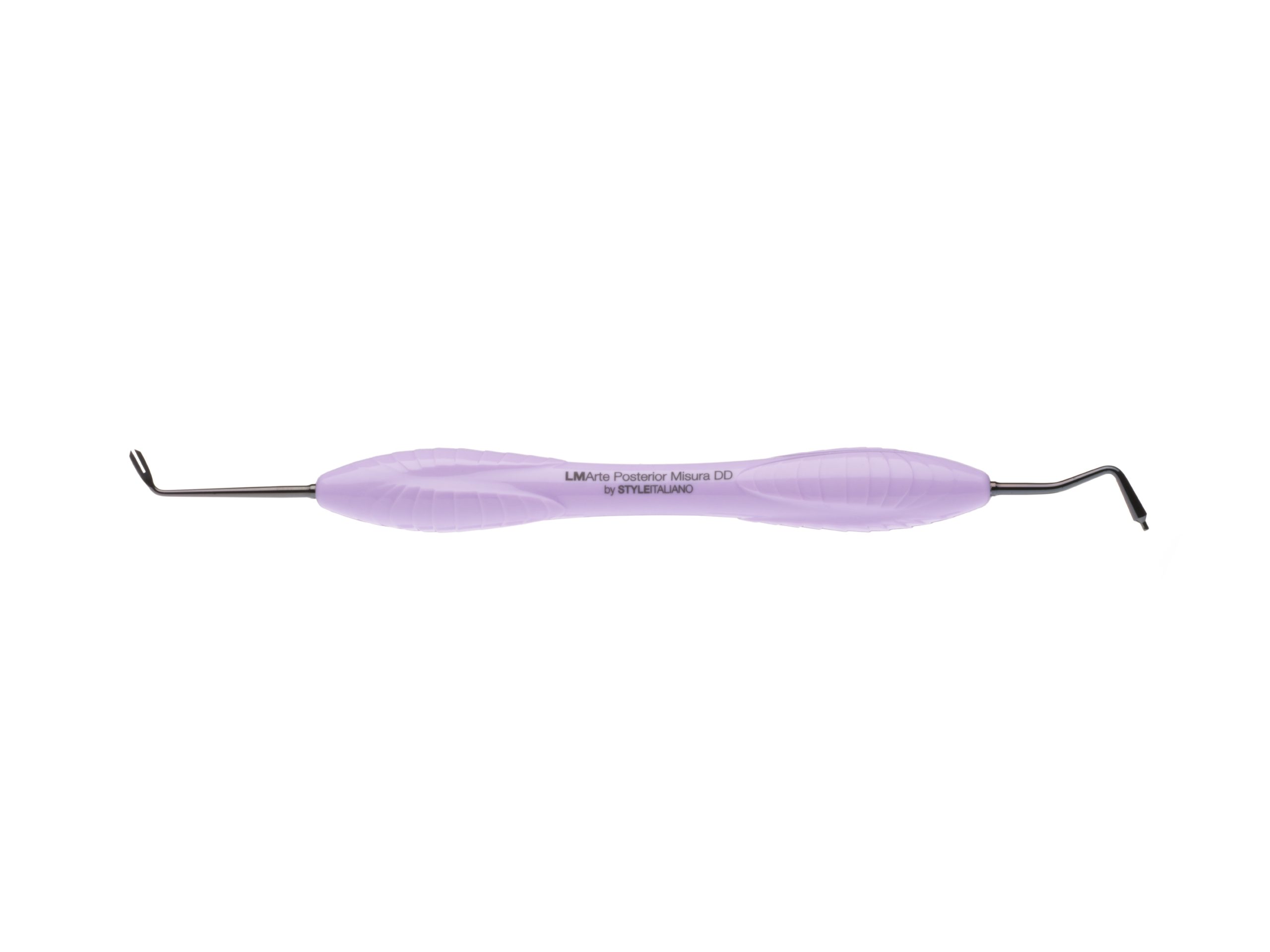 This light purple handled instrument is posterior version of the popular Misura instrument. The Dark Diamond coating makes the surface of the tip extremely smooth and hard and allows for non-stick application and modelling of composite.